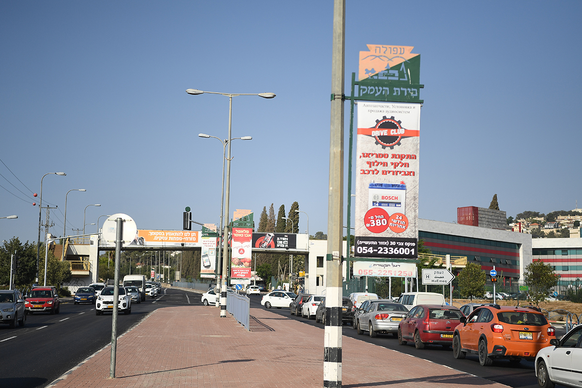 מכוונים, מפות העיר, שלטים על עמודי רחוב, קוביות על עמודי רחוב, תחנות אוטובוס, דגלים
